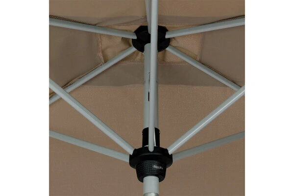 Der DOPPLER Active Auto Tilt Mittelstockschirm, 210×140 cm, mit Kurbelmechanismus in modernem Greige-Ton