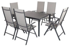VILLANA Esstischgruppe, Anthrazit/grau, Alu/Textilene, Tisch 130/180x90cm, 6 Multipositionssessel