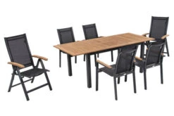OUTFLEXX Esstischgarnitur, Edelstahl / FSC-Teak, Tisch 200 X 100 Cm, 6 Multipositionssessel, Taupe