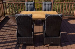 OUTFLEXX Esstischgarnitur, Polyrattan/Teakholz, Tisch 160x90cm, 4 Hochlehner, Inkl. Polster