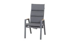 STERN Cardiff Esstischgruppe, Silber/taupe, Edelstahl/FSC-Teak, Tisch Ø 170 Cm, 6 Stapelsessel