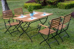 STERN Cardiff Esstischgruppe, Silber/taupe, Edelstahl/Teak, Tisch 160 X 90 Cm, 6 Stapelsessel