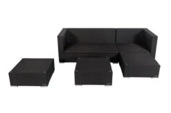 OUTFLEXX Loungemöbel-Set, Schwarz, Polyrattan, 5 Personen, Wasserfeste Kissenbox, Inkl. Kaffeetisch