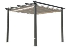 OUTFLEXX Profi Hardtop Pavillon, Grau, Aluminium, 3 X 3m Mit Seitenteilen Und Insektennetz