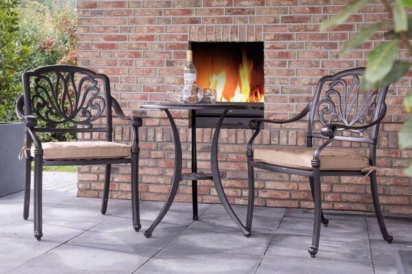 Das Set ist komplett gefertigt aus hochwertigem Aluminium-Guss, was es sehr robust und wetterresistent macht. Dadurch eignet es sich ideal für den Außenbereich und kann unbesorgt das ganze Jahr über im Freien stehen bleiben. Die Möbel sind in einem schönen Bronzeton gehalten und bietet Ihnen den höchsten Standard an Qualität und Verarbeitung.