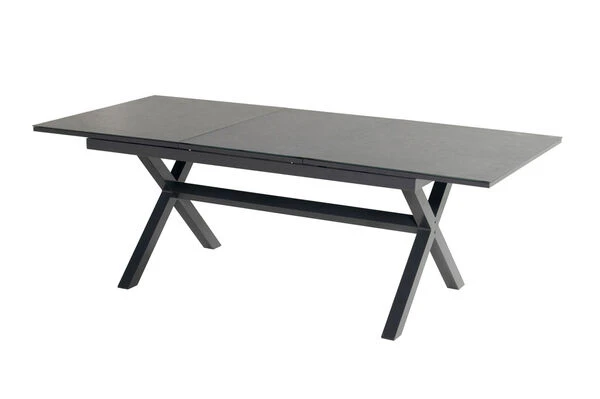 Das gekreuzte Gestell ist gefertigt aus pulverbeschichtetem Aluminium in der Farbe Xerix (Anthrazit) und wird optisch perfekt durch die Glaskeramik-Tischplatte, ebenfalls in der Farbe Xerix ergänzt. Die Maße von ca. 160 x 100 x 75 cm sorgen dafür, dass stets ausreichend Ablagefläche zur Verfügung steht. Bei Bedarf kann der Tisch auf eine Länge von ca. 220 cm ausgezogen werden, so finden bequem auch große Runden genügend Platz in Ihrem Garten. Dank der Ausziehfunktion hebt sich dieses Modell von den üblichen Tischen der Xanadu Serie ab – den Ausziehtisch erhalten Sie exklusiv bei uns.