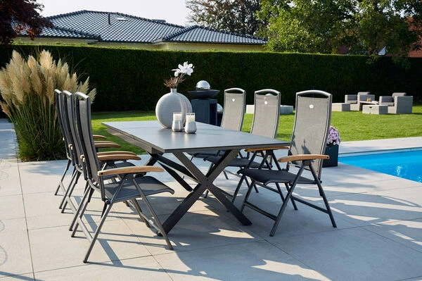 6x Multipositionssessel Da Vinci in xerix/anthrazit, Armlehnen aus FSC®-Teakholz