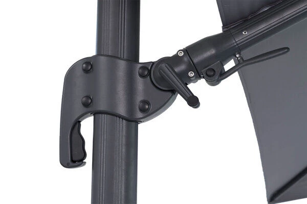 - Kurbel lässt sich in den Schirmstock umstecken, dann kann der Schirm um 360° gedreht werden.