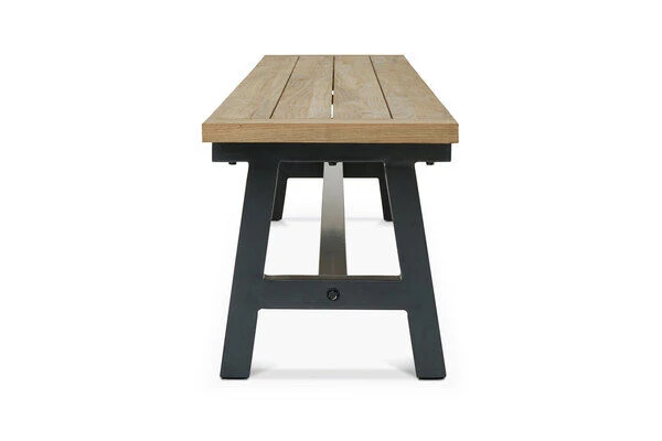 OUTFLEXX® Gartenbank „Belanda“ aus recyceltem FSC®-Teakholz und Aluminium, ca. 200 x 40 x 45 cm