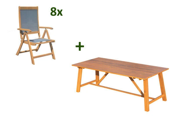 OUTFLEXX® Esstischgarnitur aus FSC-zertifiziertem Akazienholz für 8 Personen