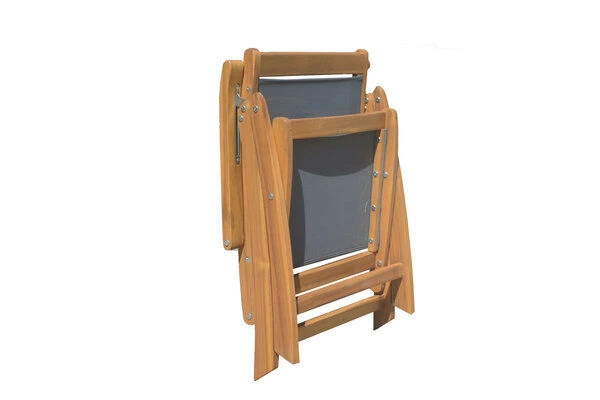Der Stuhl besteht aus hochwertigem, naturbelassenem FSC-zertifiziertem Akazienholz in Kombination mit Textilene. Die besondere Bespannung der Rückenlehne und der Sitzfläche mit Textilene bieten einen zusätzlichen Komfort. Zudem ist die Rückenlehne 5-fach verstellbar und bietet Ihnen somit für jede Gelegenheit eine komfortable Sitzeinstellung. Der Stuhl lässt sich einfach zusammenklappen und somit bei Bedarf platzsparend verstauen. Mit einer Belastbarkeit von bis zu ca. 110 kg ist der praktische Klappstuhl äußerst robust und vielseitig einsetzbar.