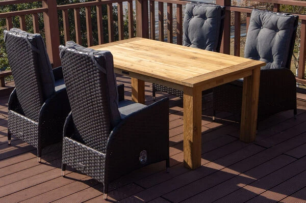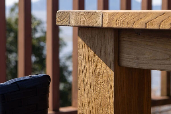 Die verwendeten Materialien und deren hochwertige Verarbeitung machen den Tisch besonders strapazierfähig, robust und zusätzlich sehr stabil. Das Teakholz ist besonders witterungsbeständig und hält sowohl Hitze und Frost, als auch Regen und Feuchtigkeit aus. Es hat außerdem aufgrund des hohen Anteils an holzeigenen Ölen einen natürlichen Schutz gegen Pilze und andere Schädlinge, sodass sich die Pflege dieses Gartentisches auf ein Minimum beschränkt und Sie Ihre Zeit im Garten mit angenehmen Tätigkeiten verbringen können. Das Teakholz ist ein Naturprodukt und lässt so jeden Tisch zu einem Einzelstück werden. Diese Natürlichkeit wird mit der allmählichen Patinabildung in einem schönen Silbergrau unterstrichen. Wenn Sie dieser entgegen wirken möchten, empfehlen wir Ihnen eines unserer Pflegeöle, welches Sie im Zubehör finden. Zum Schutz Ihrer Terrasse ist der Tisch zusätzlich mit Fußkappen ausgestattet, welche unschöne Kratzer vermeiden.
