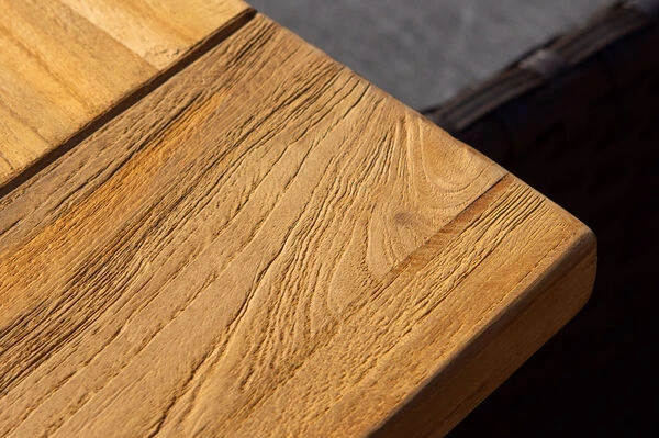 Der Esstisch überzeugt durch seine stattliche Größe von ca. 160 x 90 x 77 cm und bietet damit ausreichend Platz für 4-6 Personen. Das verwendete recycelte Teakholz verleiht dem Tisch einen ganz besonderen Charme. Die rustikal gebürstete Oberfläche sorgt dafür, dass die natürliche Struktur des Holzes erhalten bleibt und die Maserung besonders gut zum Vorschein kommt. Dazu kann der Tisch einer Plattenstärke von ca. 3 cm vorweisen.