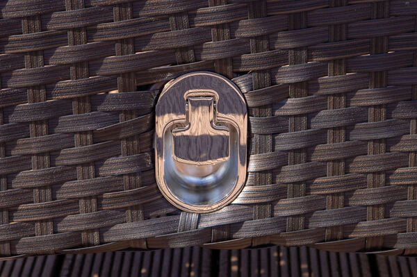 | Stabiles Polyrattan-Geflecht Das flache Polyrattan-Geflecht in der Farbe braun ist besonders stabil, wasserabweisend und wetterfest. | |