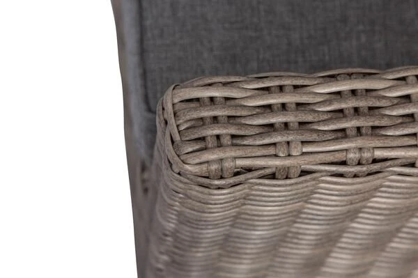 Ihre neuen Gartenmöbel sind äußerst pflegeleicht und strapazierfähig, da die verwendete, halbrunde Faser sowohl Hitze und Frost als auch UV-Strahlen, Salzwasser und Chlor unbeschadet hinnimmt und nichts von ihrer ursprünglichen Schönheit einbüßt. Im Inneren befindet sich ein rostfreies Aluminiumgestell, welches für die nötige Stabilität sorgt und aufgrund des geringen Gewichts einen einfachen Platzwechsel ermöglicht. Alle Module verfügen über edle Aluminiumfüße, die dank der Kunststoffnoppen Ihren Bodenbelag schonen und einen schönen Kontrast zur Polyrattanfaser bilden.
