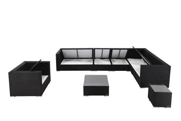 Für Ihr Outdoor Wohnzimmer: die OUTFLEXX® XXL Gartenlounge mit Kissenboxfunktion inkl. Kaffeetisch in schwarz