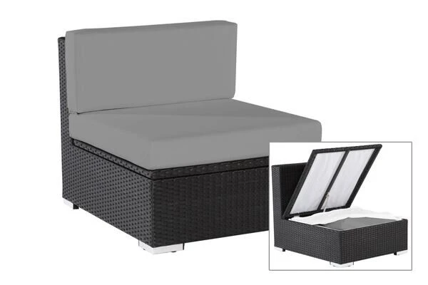 OUTFLEXX Mittelelement, Schwarz, Polyrattan, Inkl. Polster Und Kissen, Wasserfeste Kissenbox
