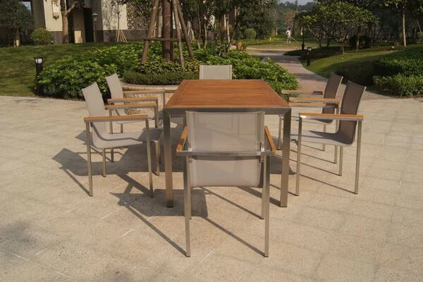 Das verwendete Teakholz ist FSC-zertifiziert und stammt damit aus verantwortungsvollen Quellen. So können Sie sich guten Gewissens zurücklehnen und sich so richtig entspannen. Teakholz und Edelstahl sind besonders witterungsbeständig und halten sowohl Frost und Hitze als auch Feuchtigkeit und Regen aus. Teakholz hat aufgrund des hohen Anteils an holzeigenen Ölen einen natürlichen Schutz gegen Pilze und Schädlinge. So beschränkt sich die Pflege Ihrer neuen Gartenmöbel auf ein Minimum und Sie können Ihre Zeit im Garten mit angenehmen Tätigkeiten verbringen.