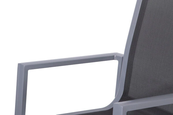 Stapelsessel von OUTFLEXX® aus Aluminium und Textilene in silber/grau