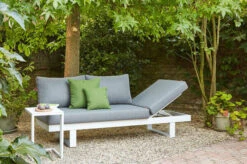 Lassen Sie den Alltag hinter sich: Mit Maßen von ca. 73 x 195 x 70 cm bietet die Bank eine Sitzbreite von ca. 194,7 cm. Bis zu 3 Personen finden bequem auf ihr Platz. Mit einer Sitzhöhe von ca. 28,5 cm lässt es sich gemütlich entspannen. Ein herrlicher Rückzugsort, um den Tag gemeinsam ausklingen zu lassen! Die hochwertige Verarbeitung macht die Bank strapazierfähig und robust, mit einem Gewicht von ca. 28,5 kg ist sie auch sehr stabil und wertig. Die mitgelieferten Sitz- und Rückenkissen in der Farbe matt weiß-grau bestehen zu 100% aus Polypropylen, dieses Material ist sehr wetterfest. Die Rückenlehne ist umklappbar, somit können Sie Die Bank auch als Liege verwenden. Die Produkte der Marke bestechen vor allem durch ansprechendes Design, Robustheit der Materialien und Pflegeleichtigkeit – sie sorgen für ein absolutes Wohlfühlambiente in Ihrem Garten. Die Qualität wird Sie begeistern und Sie werden sich viele Jahre daran erfreuen.