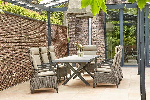 SIENA GARDEN Messina/Corido Dining Set, anthrazit/grau, Alu/Gardino®-Geflecht/Keramik, ca. 200-260 x 100 cm, inkl. 8 Diningsessel