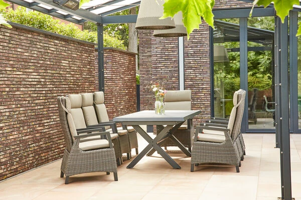 Holen Sie sich eine Extraportion Komfort in Ihren Garten. Die moderne Serie Solea besticht durch höchsten Sitzgenuss. Die einzigartigen Wellness-Möbel vereinen gekonnt Qualität mit trendigem funktionalen Design. Die Rückenlehne des bequemen Dining Sessels lässt sich mehrfach verstellen, somit wird jedes Essen zu einem gemütlichen Miteinander.