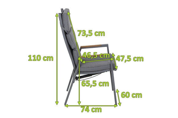 SIENA GARDEN Savona Sessel, matt graphit , Alu/FSC-Teak/Texfabric, 74x60x110 cm, verstellbare Rückenlehne, inkl. Polster
