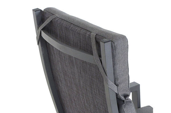 Das solide und formschöne Gestell besteht aus edlem, matt graphit farbenem Aluminium. Die quartzgraufarbene Sitzfläche aus wetterfestem Texfabric ist schnelltrocknend und angenehm in der Haptik. Mit den Maßen von ca. 74 x 60 x 110 cm und einem Gewicht von ca. 6,7 kg lässt sich der Sessel leicht hin und her stellen und ist so stets flexibel was seinen Einsatzort betrifft. Die Fußkappen bestehen aus schwarzem Kunststoff und schützen den Boden vor unschönen Kratzern beim Verrücken des Möbelstücks. Der Sessel bietet die perfekten Voraussetzungen für ein entspanntes Beisammensitzen.
