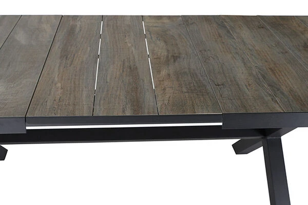 Wer das Besondere liebt und gerne auf jede Gelegenheit vorbereitet sein möchte, ist mit einem Ausziehbaren Esstisch bestens bedient. Der Tisch ist ca. 103 cm breit und ca. 77 cm hoch, im normalen Zustand hat er eine Länge von ca. 205 cm – so steht dem gemütlichen Mittagessen mit der Familie nichts mehr im Wege. Das Gestell wurde aus pulverbeschichtetem Aluminium in Anthrazit hergestellt, was den Tisch besonders haltbar macht. Die Tischplatte besteht aus hochwertigem Keramik in naturgrauer Holzoptik. Die Platte zum Erweitern des Tisches ist ebenfalls aus ca. Keramik gefertigt und lässt sich ganz einfach ausziehen. Man zieht einfach die beiden oberen Platten auseinander und zieht die darunterliegende Platte nach oben, und schon ist der Tisch auf ca. 265 cm erweitert – perfekt für spontane, große Runden. Die Unterschubhöhe beträgt ca. 68 cm – so kann man gemütlich mit vielen Arten von Sesseln an diesem Tisch Platz nehmen. Der Tisch hat ein Gewicht von ca. 93,5 kg, und ist somit perfekt gegen Windstöße geschützt. Die Fußkappen bestehen aus schwarzem Kunststoff und schützen den Boden vor unschönen Kratzern beim Verrücken des Möbelstücks.
