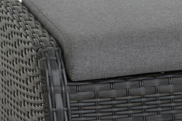 Bei Wind und Wetter sorgt die Witterungsbeständigkeit und Pflegeleichtigkeit der verwendeten Materialien für den nötigen Schutz. Das Untergestell des Sessels und des Hockers besteht aus pulverbeschichtetem Aluminium, und ist stabil sowie widerstandsfähig. Aufgrund des geringen Gewichts (Sessel ca. 15,2 kg und Hocker ca. 4,2 kg) lassen sich beide Möbelstücke auch schnell an Ihren Lieblingsplätzen im Garten, auf der Terrasse oder auf dem Balkon platzieren. Das Aluminiumgestell wird mit halbrundem GARDINO®-Geflecht aus Polyethylen bespannt. Diese Faser trocknet besonders schnell, ist schmutzunempfindlich und erzeugt mit ihrer natürlichen Optik einen edlen und modernen Look, der jeder Gartengestaltung ein besonderes Flair verleiht. Die gemütlichen und pflegeleichten Sitzpolster sind farblich passend auf das Geflecht abgestimmt. Bei Verschmutzung sind die Bezüge des Sessels leicht zu reinigen – bitte beachten Sie, dass das Kopfteil des Sessels nicht abnehmbar ist. Wir empfehlen dieses vorsichtig per Hand zu waschen.