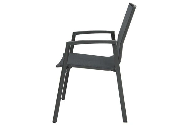 Leicht wie eine Sommerbrise und doch stabil und robust! Die stylischen Stapelsessel “New Top” von STERN fügen sich optisch sowohl auf Ihrer Terrasse, im Garten oder auf dem Balkon ein, ohne sich dabei aufzudrängen. Für das solide, anthrazitfarbene Gestell kommt ebenfalls korrosionsbeständiges Aluminium zum Einsatz. Bespannt werden die Gestelle mit Textilene im edlen “karbon”. Das Material ist unglaublich hautsympathisch und sorgt für ein herrliches Sitzgefühl, das Sie auch in der Sommerhitze nicht im Stich lässt. Designstarke Armlehnen schenken den Sesseln erhöhten Komfort. Die Gesamtmaße liegen jeweils bei ca. 65 x 57 x 89 cm. Mit einer großzügigen Sitzfläche von ca. 45 x 42 cm sitzen Sie stets bequem. Dank der hohen Qualität und erstklassigen Verarbeitung sind die ca. 3,5 kg leichten Sessel belastbar und lassen sich auch problemlos an Ihren Lieblingsorten aufstellen. Bei Nichtgebrauch können Sie die Sitzmöbel einfach stapeln und platzsparend verstauen.
