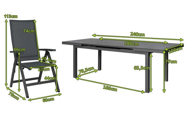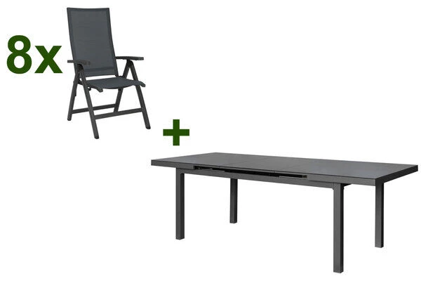 STERN New Top Esstischgarnitur aus Aluminium/Textilene, Anthrazit, 8 Klappsessel und Premium Ausziehtisch 180/240x100x77cm